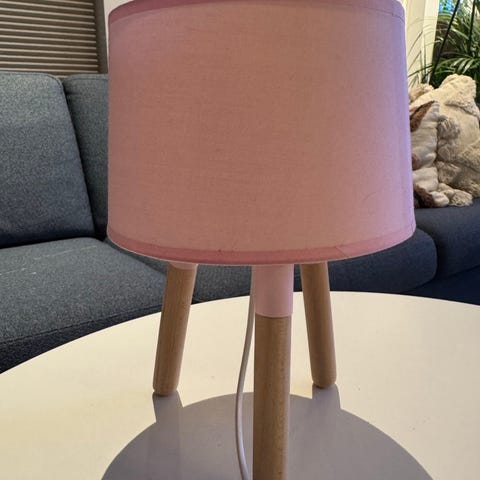 Selger en moderne og stilren bordlampe fra IKEA med trefot og lys tekstilskjerm. Lampen er som ny og fungerer som den skal. Lyspære følger med.