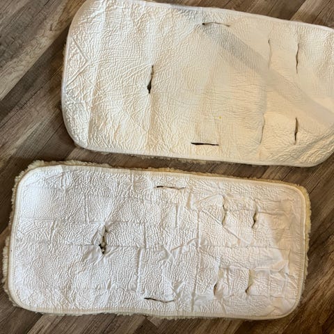 Bugaboo lammeskinn innlegg til vogn. Innleggene er laget i ull/lammeskinn med myk, polstret overflate. De har utsparinger til seler slik at de kan brukes i barnevogn eller sportsvogn. Egnet for å gi ekstra komfort og varme i vognen, og kan brukes i ulike typer Bugaboo-vogner som har kompatibelt seleoppsett.
