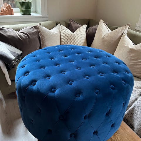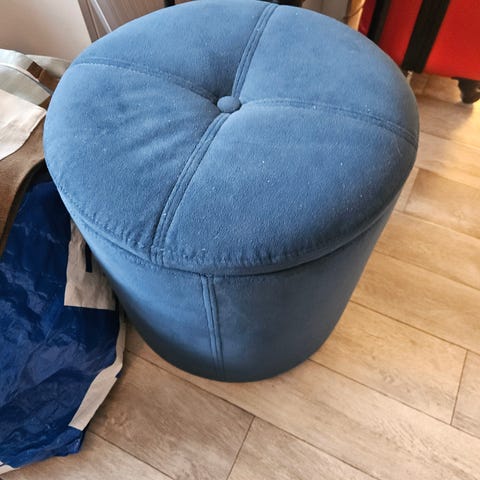Har noen små malingsflekker på siden. Har fortsatt god sittekomfort igjen og kan brukes som pute eller hundeseng 🐶 (ikke blitt brukt til det)