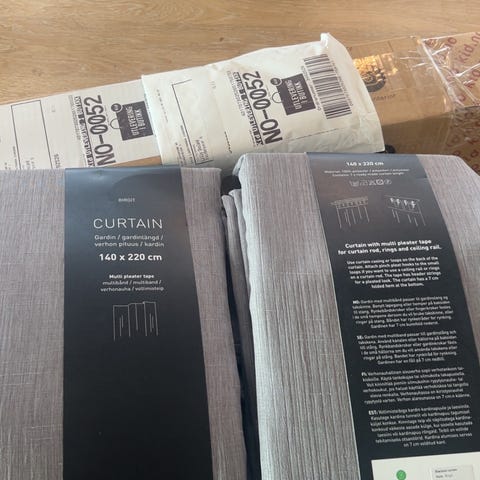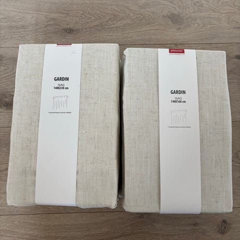 Rusta blackout gardin i beige. Lystette fine gardiner 135x250selges. Kjøpt for 1 uke siden, bare den ene som ble pakket opp da jeg skulle henge den opp, men viste seg at lengden var for lang. Selges for 350kr kjøpt for 500kr må hentes