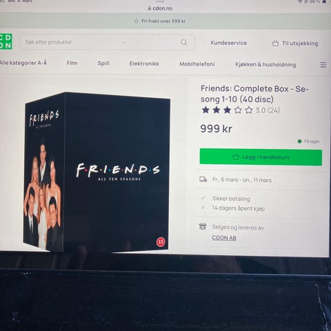 Friends sesong 1 til 10 - komplett. Selges samlet.