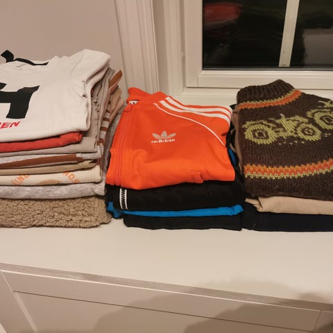 Rød bukse fra hampton republic, str 116, men her har vi brukt den på samme tid med de andre buksene.