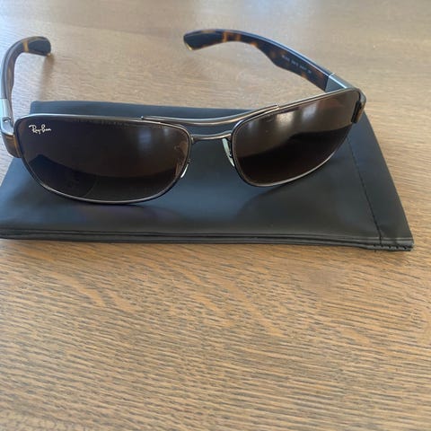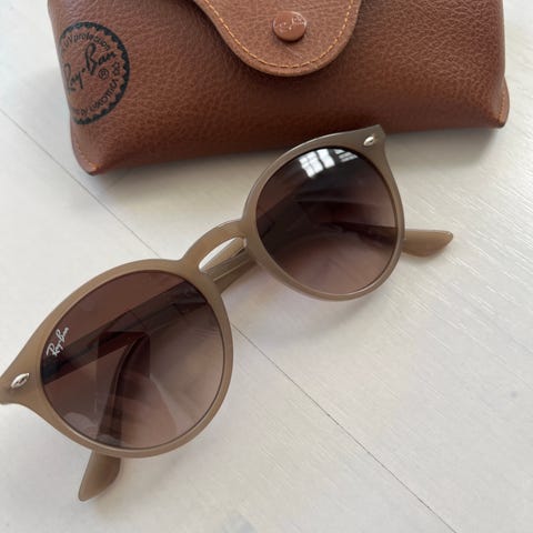 Ray-Ban solbriller unisex i brun farge. Rundt/oval form med metallinnfatning i gulltone og skilpaddemønstrede stenger. Brune glass med jevn fargetone. Passer til både kvinner og menn. Leveres med originalt Ray-Ban-etui som vist på bildene. Disse brillene er laget i et veldig lett materiale, så man kjenner nesten ikke at man har de på. Kan sendes med fiks ferdig eller hentes i Fredrikstad.