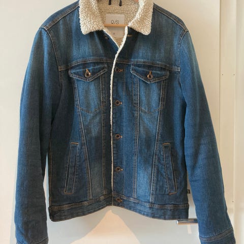 Jakken er blå og laget i denim-materiale. Den har krage og fôr med teddy-/pelsimitasjon på innsiden av kragen og frontpartiet, samt knappelukking foran. Flere lommer foran, både brystlommer med klaff og sidelommer. Passer som ytterjakke i overgangssesonger eller på kjølige dager.