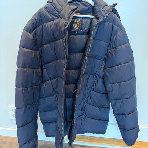 Pent brukt parka med hette. Er lite bruksmerke på innvendig elastikk i den ene ermen. Se bilder 5