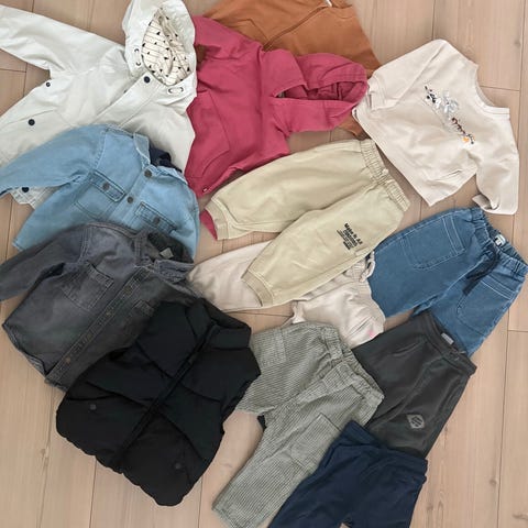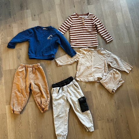 Pent brukt klespakke i str 92. Den ene buksa har et bittelite hull (se bilde), men ellers er plaggene i fin stand.