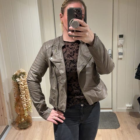 Pent brukt, som ny skinnjakke fra Jazz. Being på farge. Detaljer med glidelås på armene.