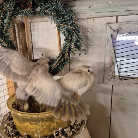 Fuglene er kjøpt av annen familie, født i august 2025. De har bodd her i 5 mnd. Svært sosiale, pratsomme, og sangglade undulater. 🦜 🎶De er ikke tamme, men vant med barn. Vant til å fly fritt på badet, noen timer i løpet av dagen. De flyr selv inn i buret når de er ferdige.