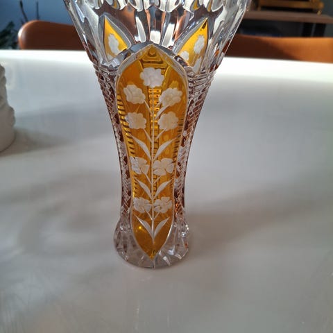 Vintage skål i tysk blykrystall. I følge etikken munnblåst og håndslipt. Ingen skader. H. 10cm. B. ca. 21.5 cm.