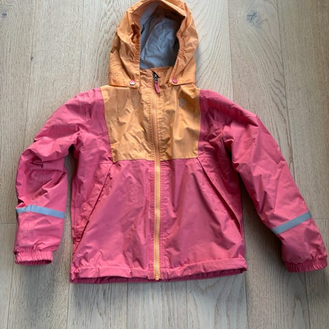Helly Hansen barnejakke i Gore-Tex, størrelse 110, unisex. Jakken er flerfarget med blant annet rosa, rød, gul og mørke detaljer. Den har hette, glidelås i front og trykknapper øverst. Jakken har flere lommer med glidelås og forsterkede partier nederst på ermene. Gore-Tex-materialet er utviklet for å være vind- og vanntett samtidig som det puster, og passer til variert bruk ute for barn i størrelse 110-120