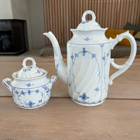 Porsgrunn porselen blå strå kaffekanne