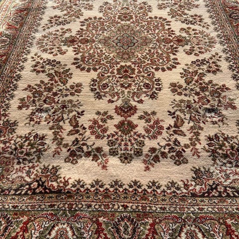 Fantastisk fint persisk teppe i tykk og kraftig ull. Teppet har et utrolig lekkert mønster og en moderne fargekombinasjon. I veldig god stand