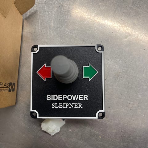 Lectrotab bryterpanel for trimplan med dobbel vippebryter i svart plast. Panelet har to separate brytere merket «Bow down» og «Bow up» for justering av baugens posisjon. Leveres som firkantet innfellingspanel med fire skruehull for montering og ferdig koblede ledninger på baksiden. Universal.