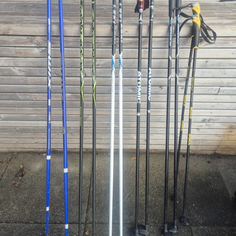 Selge fire par langrenns staver for barn i forskjellige størrelser. Stavene er brukt, men fullt funksjonelle. Håndtak og trinser er hele og fungere som de skal. Normale bruksmerker. Selges samlet eller separat: