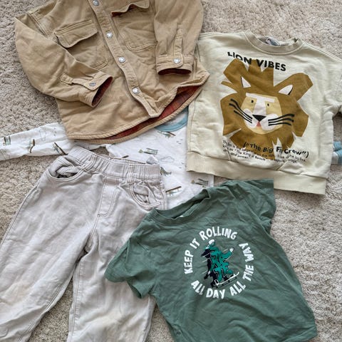 Noen av klærne har enkelte anmerkninger og/eller er falmet på farge.