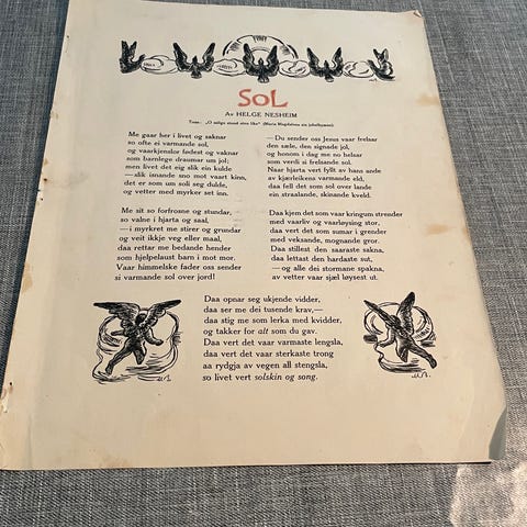 Fin plakat/avisside fra 1919.Nikolia Astrids Jølstra Sagn,en annen artikkel/historie på andre side.bud