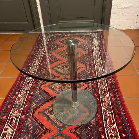 2 stk eksklusive glassbord selges samlet eller hver for seg. Kan fint settes sammen til ett bord.