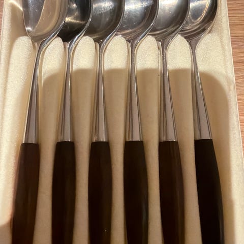 6 stk. Spise Skjeer som ligger i sin originale eske selges samlet kr. 1200,-