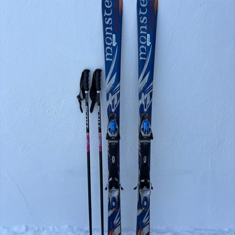 Har stått og samlet støv og har ikke vært i bruk av oss. Passer veldig bra til junior som skal begynne å stå på ski.