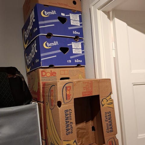 Pappesker for bananer i standard størrelse. Eskene er egnet til oppbevaring og flytting av ulike gjenstander. Pent brukt. Ingen skader.