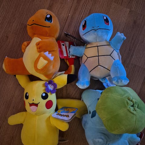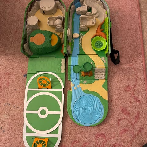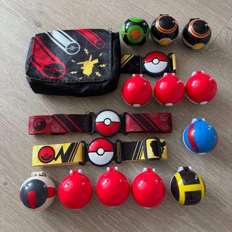Pokémon lekesett med rund kamp-arena i plast og tre røde Pokéball-figurer. Arenaen har gjennomsiktig gul farge med Pokémon-logo. Inne i Pokéballene ligger små Pokémon-figurer. Egnet som samleleke og til rollelek for barn som liker Pokémon-universet. Nypris rundt 700,-