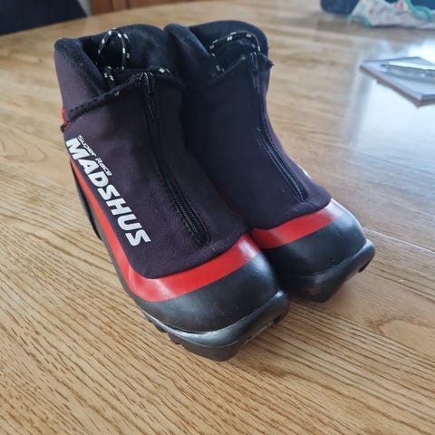 Madshus CT 100 JR langrennsstøvler i størrelse 35. Modellen er en junior/langrennsstøvel med overdel i syntetisk materiale og tekstil, med glidelås over snøringen for ekstra beskyttelse mot snø og fukt. Yttersålen er tilpasset klassisk langrenn med kompatibelt bindingssystem (se bilder av såle for detaljert type).
