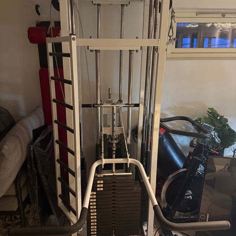 Vektløfteutstyr m/utstyr for nedtrekk og treningsbenk av type Technogym selges.