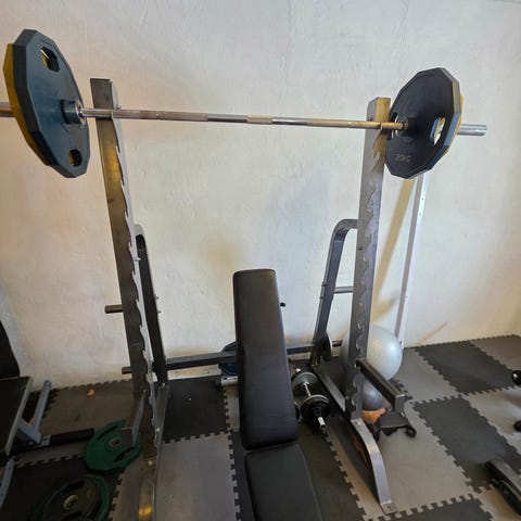 Treningsbenk justerbar fra Gymtech, 2stenger, handmanualer, venteligere 100+kg, gulvmatter, benker i tre følger med