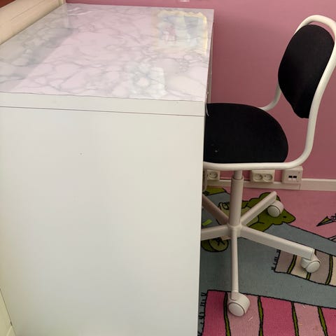 IKEA barnestol med hjul i svart. Stolen har polstret sete og rygg, og er utformet for barn. Den har kryssfot med hjul som gjør den enkel å flytte rundt, og passer til bruk ved skrivepult eller arbeidsbord på barnerom eller i fellesrom. Den er justerbar i høyden, og kan svinge rundt. Veldig pent brukt.