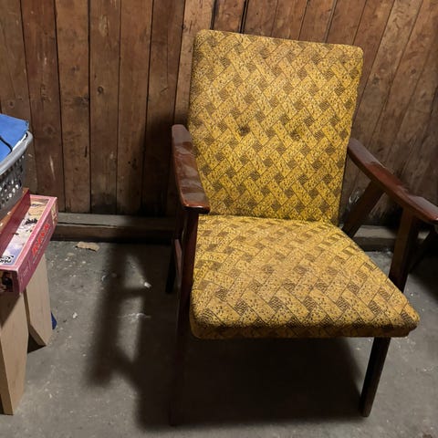 Den ene stolen har stått delvis i solen så øverste del er lysere.