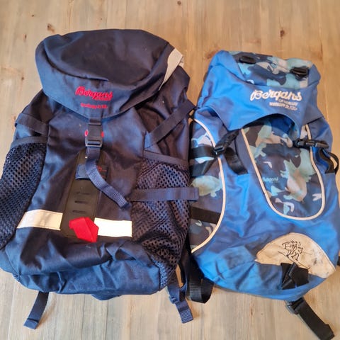 2stk Bergans Nordkapp Jr sekk med volum på 18 liter i blå farge.