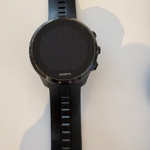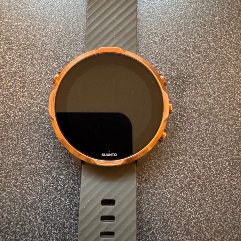 Suunto 9 sportsklokke med oransje silikonreim og orginal rem.. Noen år med funker fjell.
