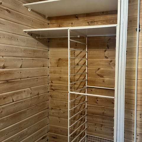 Dører medfølger ikke, men dørhengsler henger på.