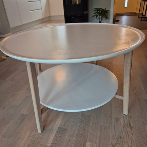 Et rundt til salgs. Salongbordet har nesten ingen bruksmerker (bitte litt på siden på øverste platen (se bilde)