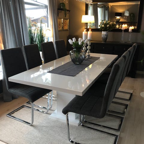 Man kan ikke bruke stolene uten trekkene, da det svarte fra stolene har smittet over farge på skinnet.
