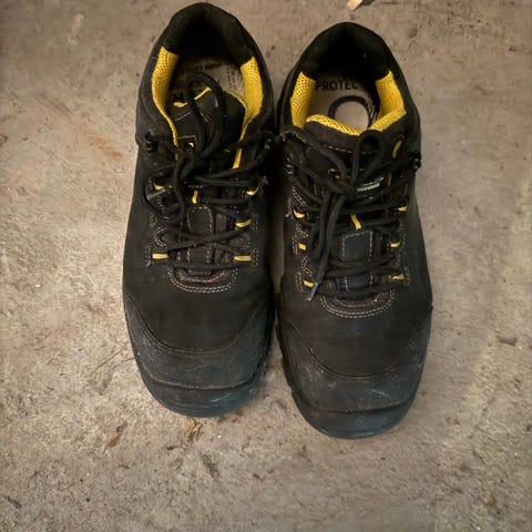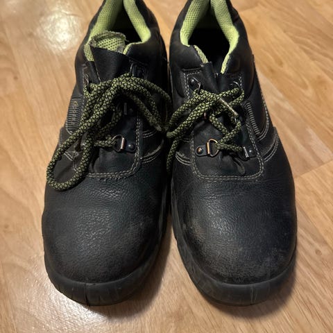 Cofra vernesko i størrelse 42. Skoene er svarte med snøring og kraftig yttersåle med grovt mønster. Overdelen er i slitesterkt materiale med polstret ankelparti og tekstilfôr. Modellen har forsterket tåparti og er egnet som arbeidssko/vernesko i ulike arbeidsmiljøer der det kreves robuste sko med god stabilitet og grep.