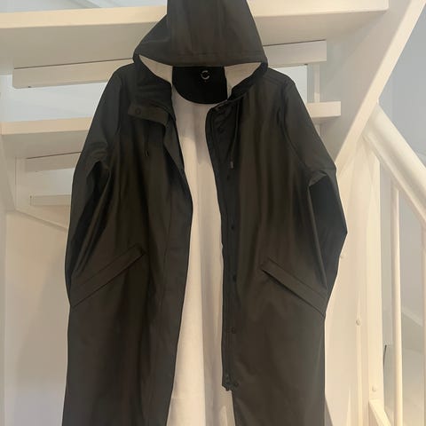 FREEQUENT ytterjakke for dame i størrelse XS., stor i størrelsen, passer nok M. Jakken er svart og laget i polyester. Modellen har hette, belte i livet og lang lengde med avrundet kant nederst. Lukkes med glidelås foran og har lommer i sidene. Passer som lett ytterjakke i overgangssesonger.