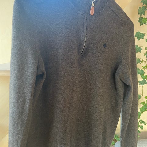 Pent brukt grønn halfzip genser fra Morris i merinoull. Krympet i vask passer gutt/ungdom eller dame small.