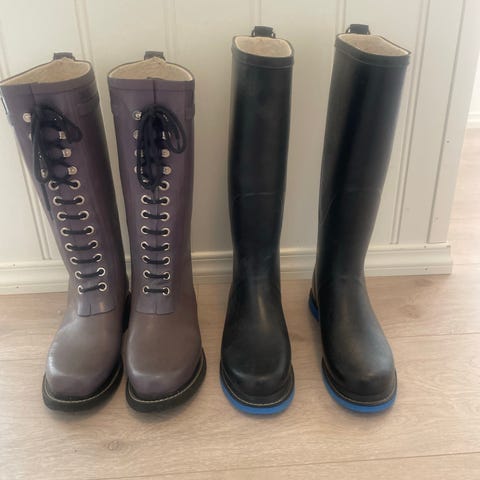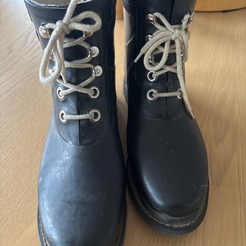 Ilse Jacobsen halve støvler, er godt brukt og mangler den ene sølv hempen bak. Se bilder. Men er hele så er mye bruk igjen. Blir nok mye finere med litt gummi puss.