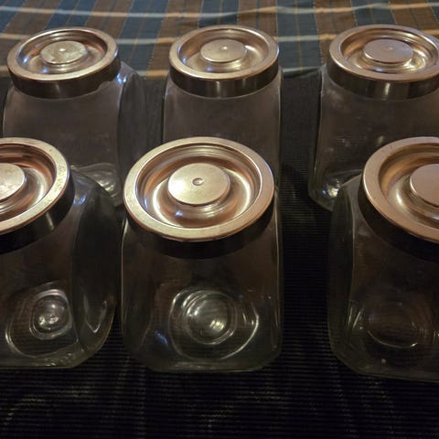 Krukkene er transparente slik at innholdet er lett å se, og de kan plasseres på benk eller i skap.