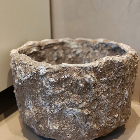 Krifon blomsterpotte i kvadratisk fasong. Potten er laget i metall med en karakteristisk grønnaktig verdigris-patina som gir et antikk utseende og med patinert grønn overflate og dekorative mønsterdetaljer på sidene. Åpningen måler omtrent 22 cm x 22 cm, og høyden er omtrent 28 cm. Egnet til innendørs eller utendørs bruk, for eksempel til planter eller små busker.