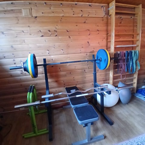 Selges grunnet vi ikke har plass til å oppbevare lengre da vi skal rive garasjen, og trener på treningssenter nå.
