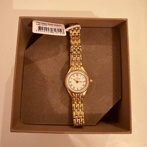 Mockberg dameklokke rektangulær gullfarget lenke