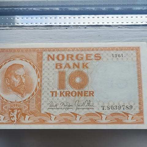 Norges Bank 10 kroner seddel 1960 T kv UNC0 oransje