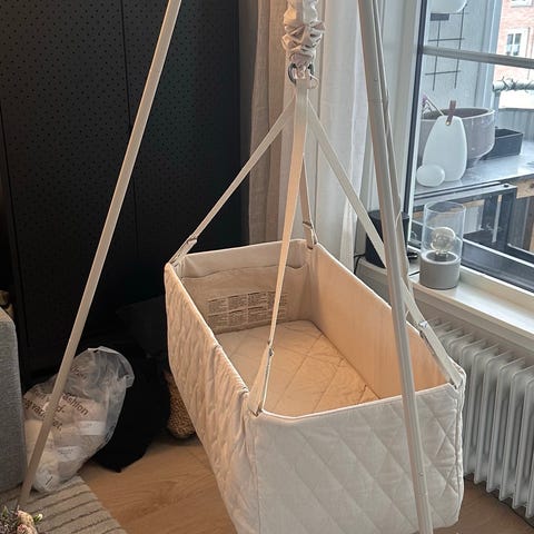Vuggens mål: 45 cm (B), 30 cm (H), 80 cm (L)