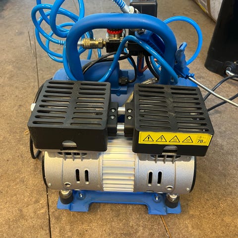 Kompressor 2 HP med lang luftslange (ca. 30–40 m) – nesten som ny