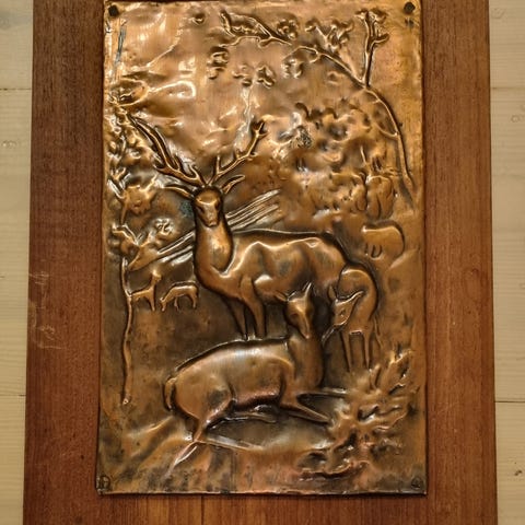 Selger 2 stk kobberstikk med motiv av tiur. Begge har oppheng på baksiden for montering på vegg. Egnet som dekorativ veggpynt i for eksempel stue, gang eller hytte.