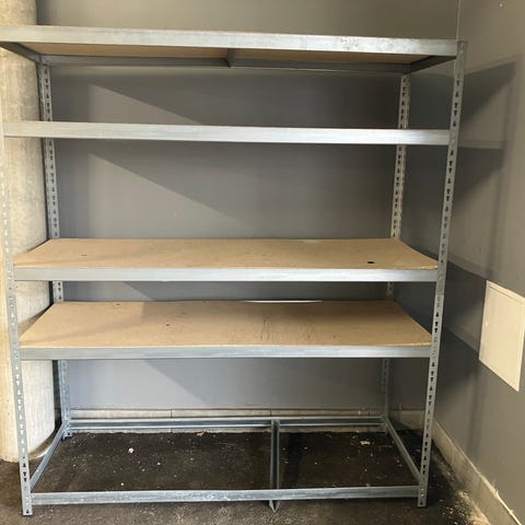 Kellen hjørnereol med målene 180 x 90 x 90 x 40 cm. Reolen har fem hyller og er beregnet for plassering i hjørne. Maks belastning er 175 kg per hylle og 875 kg totalt. Egnet som lagringsreol i for eksempel bod, garasje eller kjeller. Materiale er metall/stål med platehyller.