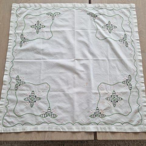 Rund håndbrodert duk