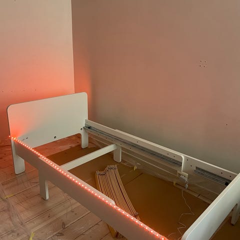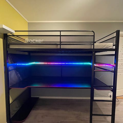 Det følger med LED-lystripe med mange forskjellige farger som gir et koselig og stemningsfullt lys på barnerommet 🌈